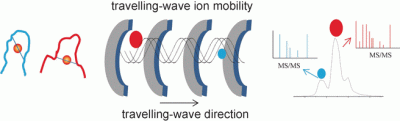 The researchers’ success stems from their use of travelling-wave ion mobility mass spectrometry (TWIM-MS). In this technique, the molecules to be analysed are ionised and the ions accelerated by an electric field in a gas. Collisions with the gas molecules cause the ions to be slowed. Large, voluminous molecules are slowed more than small, compact ones because they collide more frequently. This makes it possible to differentiate and separate isomers as well, because although they have the same mass, their different geometries result in different mobility. Once separated according to their mobility, the individual ions can now be fragmented through collision-induced dissociation (CID) and the fragments measured again by mass spectrometry. This makes it possible to characterise shorter peptides that remain bound to gold.